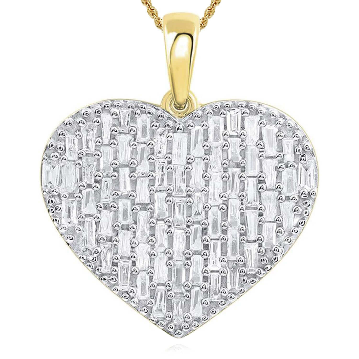 Read full return policyNatural Diamond 10K Gold Yellow White Baguette Heart Pendant 0.95"