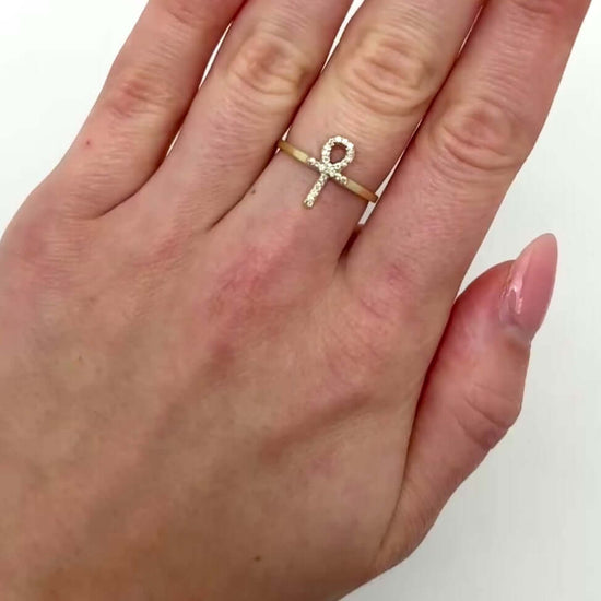 Crafted from luminous 10K yellow gold, this striking Ankh cross ring is the perfect blend of ancient symbolism and modern design. Adorned with sparkling natural diamonds, this ring is sure to catch the eye and add a touch of elegance to any outfit. Its sleek and comfortable design makes it perfect for everyday wear, or for adding a touch of glam to special occasions. Perfect for those who want to incorporate spirituality into their style, this Ankh cross ring is a beautiful addition to any jewelry collection.