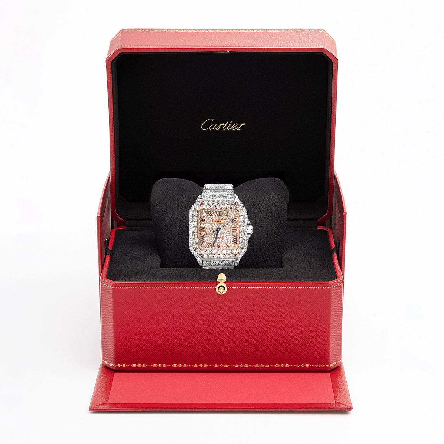 Please note: The bezel, dial, and face components are expertly crafted certified aftermarket parts, custom-set with precision natural diamonds. The movement, case, and core structure remain genuine Cartier.
