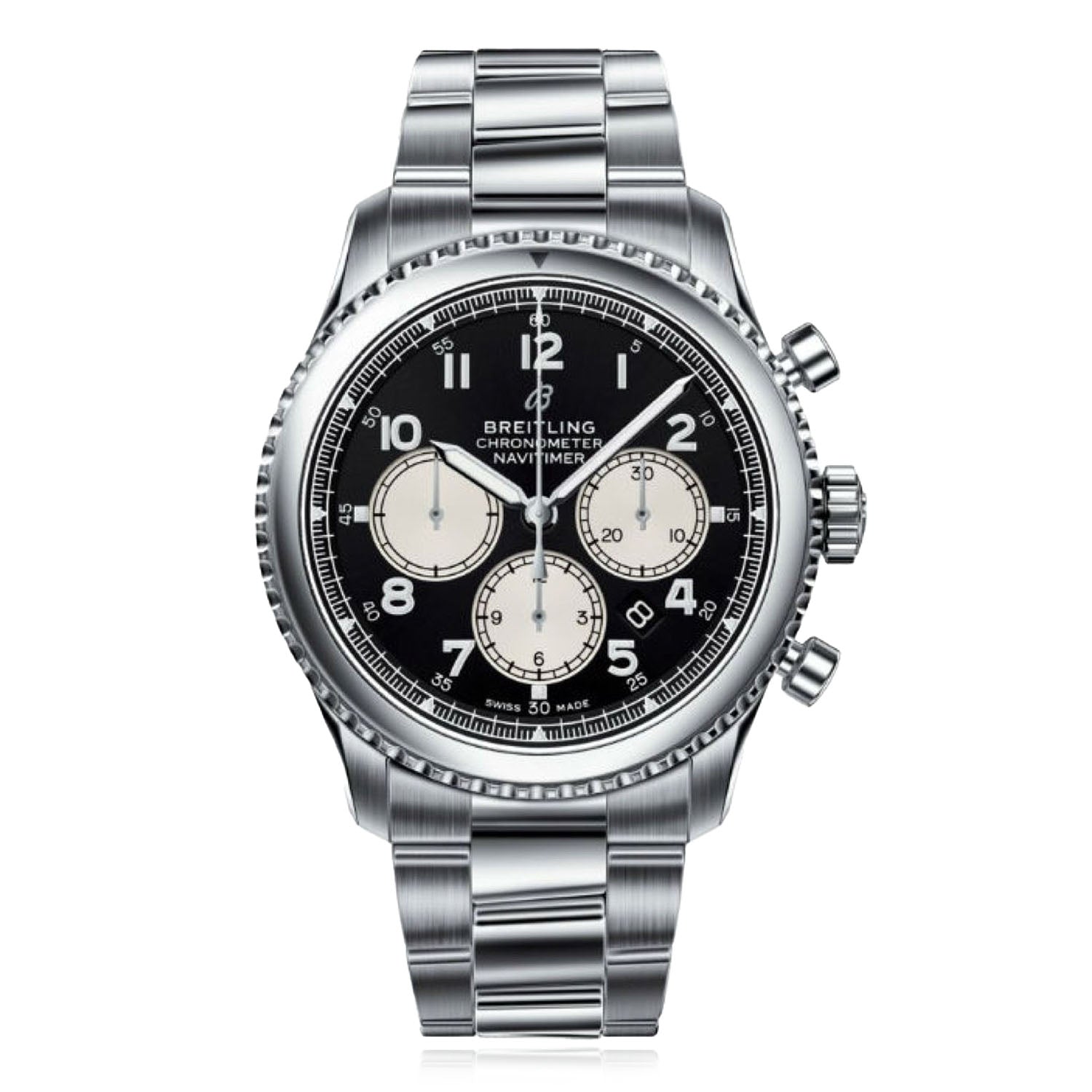 The Breitling Navitimer 8 delivers bold design and precision engineering. Featuring a 43MM stainless steel case, black dial with Arabic numerals, and automatic movement, this timepiece pairs performance with classic style. Comes with stainless steel bracelet and original box and papers for authenticity.