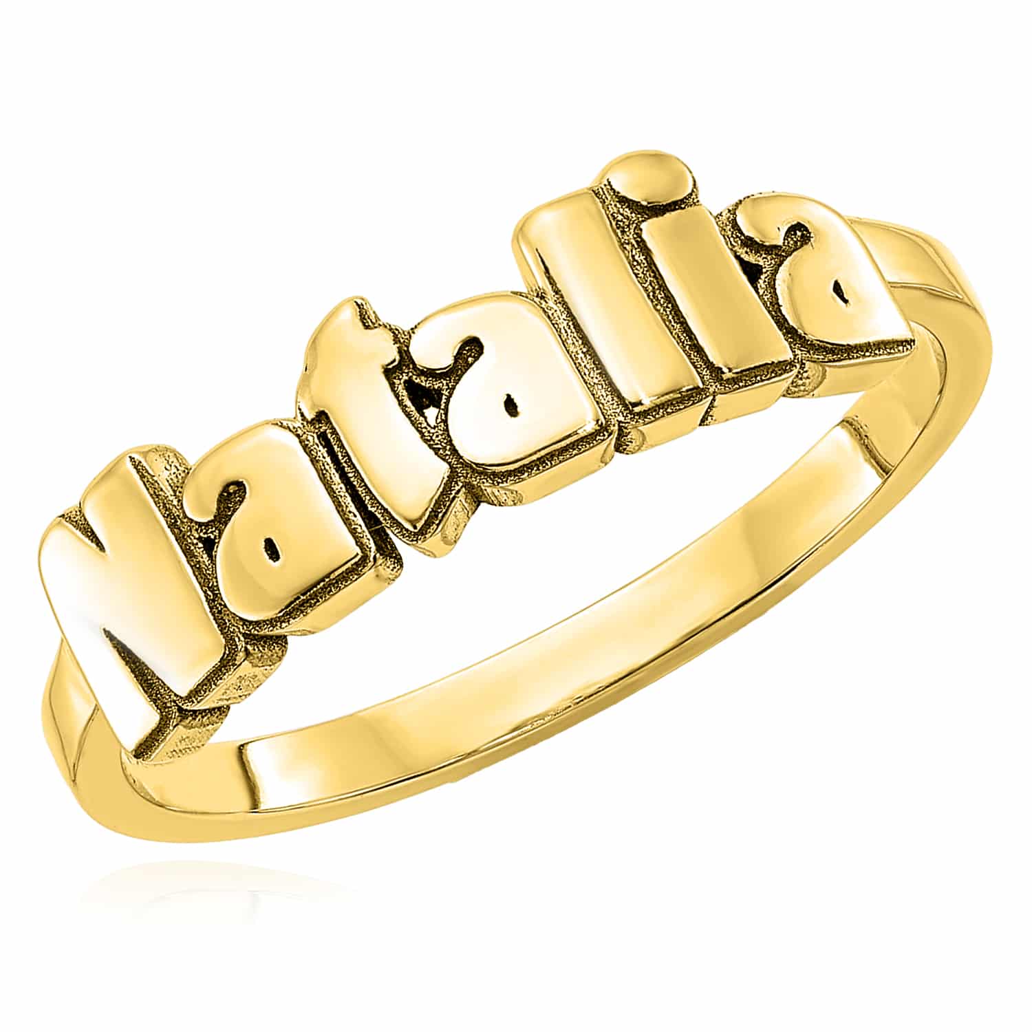 Personalized 14K Yellow Gold White Rose Custom Casted Name Ring