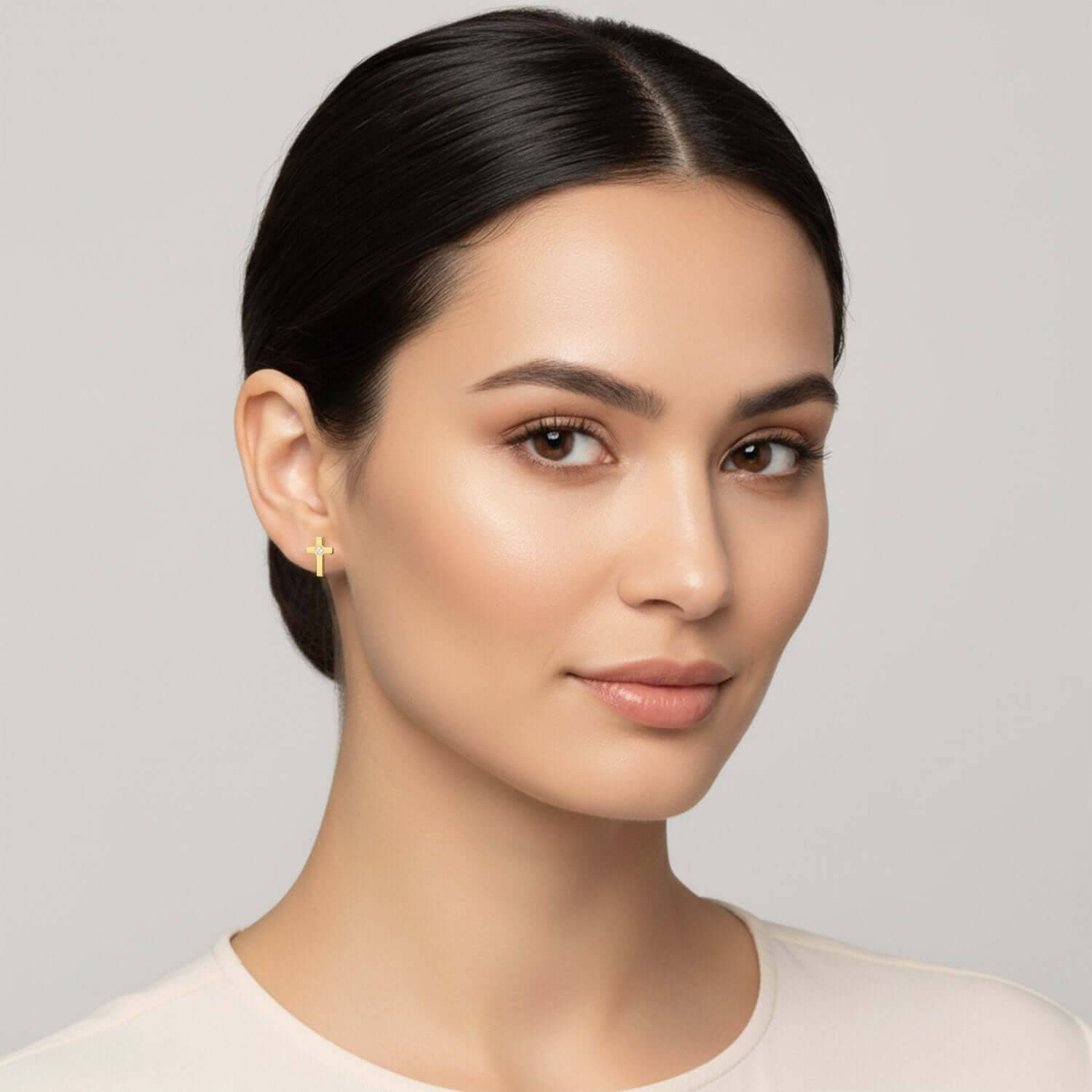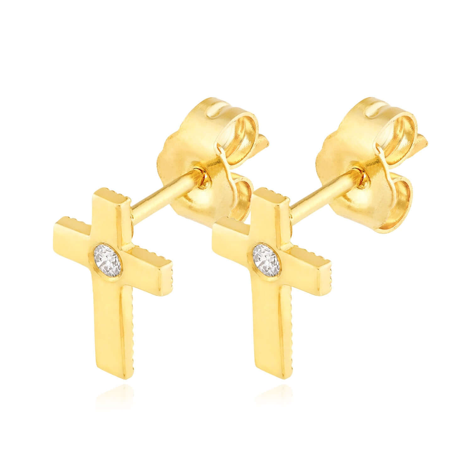 Read full return policyReal 14K Gold 0.04CTW Natural Diamond Cross Stud Earrings 11mm