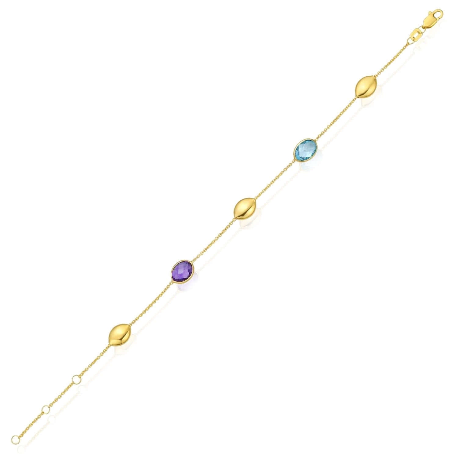 Read full return policy14K Yellow Gold Beaded Bracelet with Amethyst & Blue Topaz (Solid Links) 7.5" – Italian Made