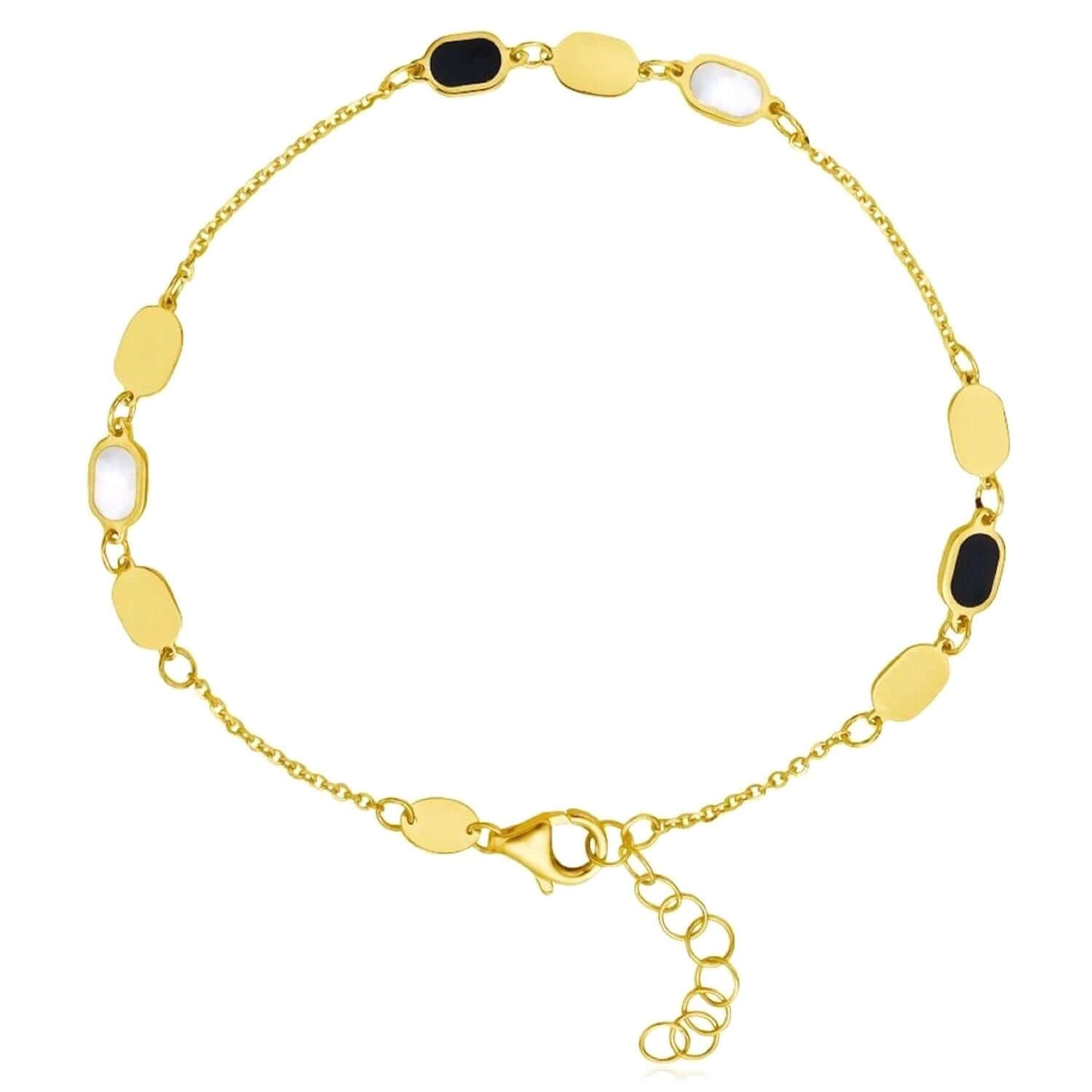 Read full return policy14K Yellow Gold Black Onyx Mother of Pearl Bracelet (Solid Links) 7"-7.5" Adjustable – Italian