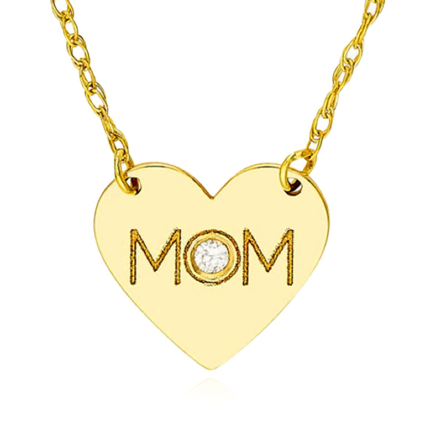 Read full return policyNatural Diamond 14K Yellow Gold MOM Heart Adjustable 16"-18" Necklace (Solid Links)