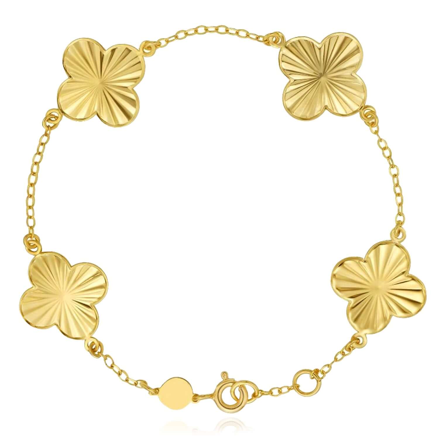 Read full return policy14K Yellow Gold Textured Clover Bracelet (Solid Links) 6.5"-7.25" Adjustable