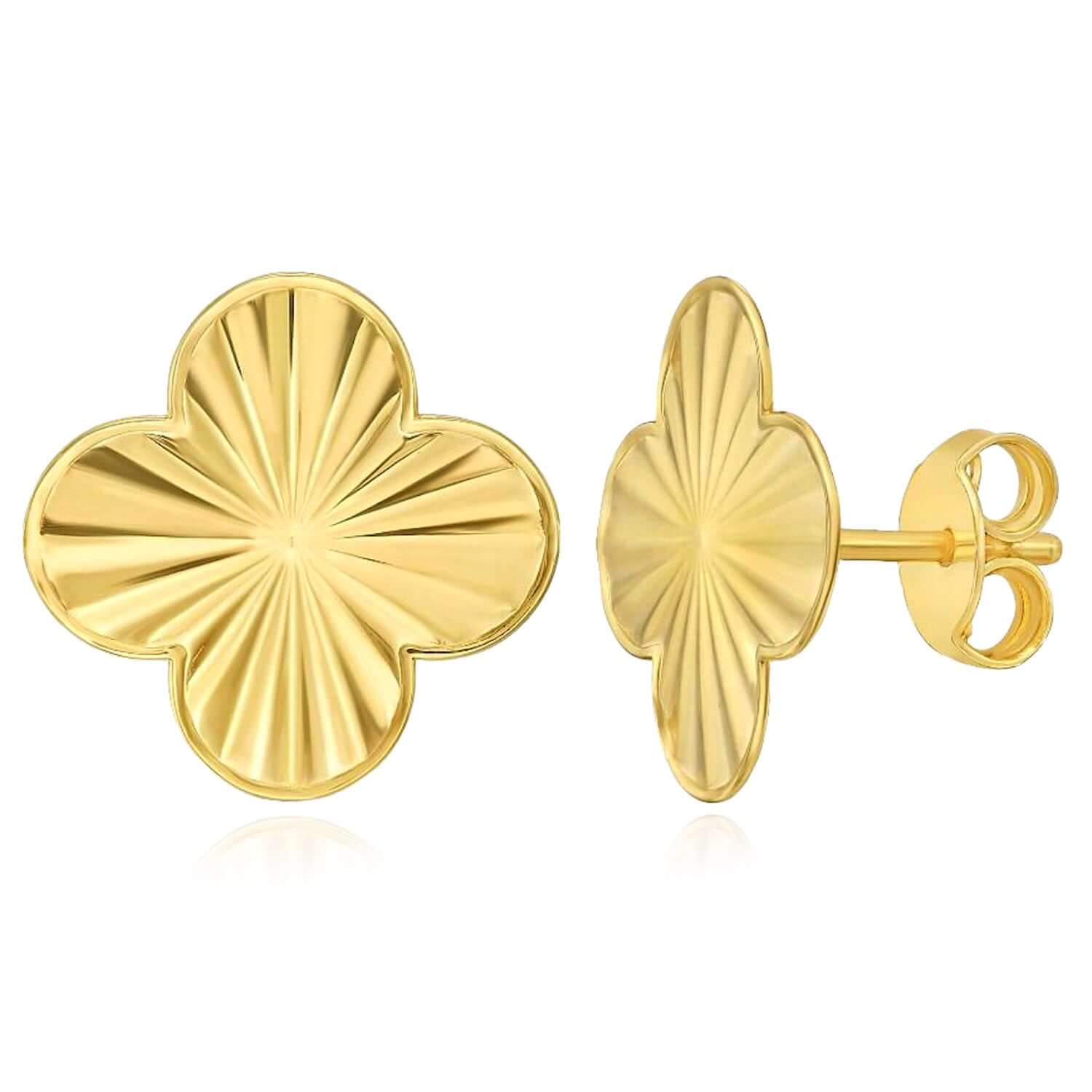 Read full return policyReal 14K Gold Textured Clover Flower Stud Earrings 12mm