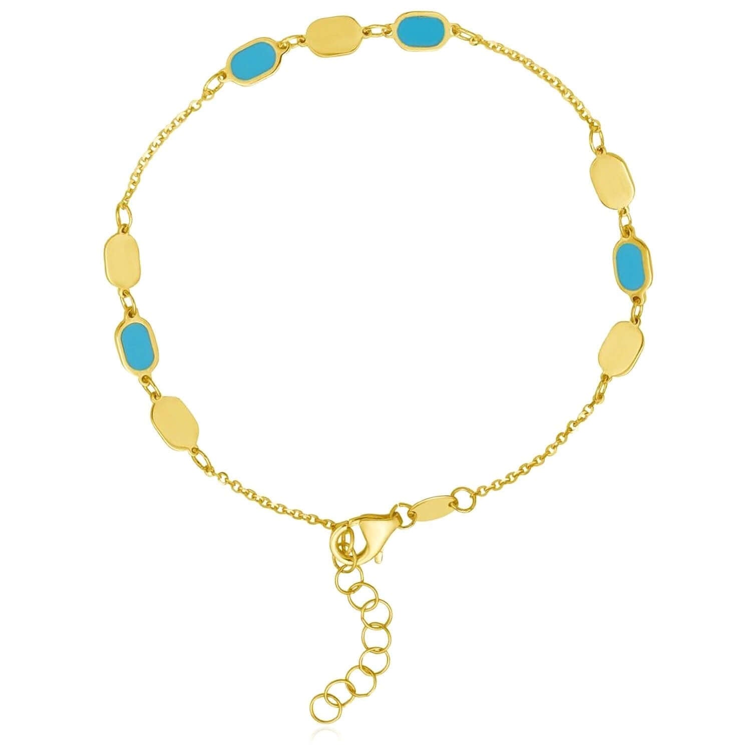 14K Yellow Gold Turquoise & Malachite Bracelet (Solid Links) 7"-7.5" Adjustable – Italian MadeCouldn't load pickup availability