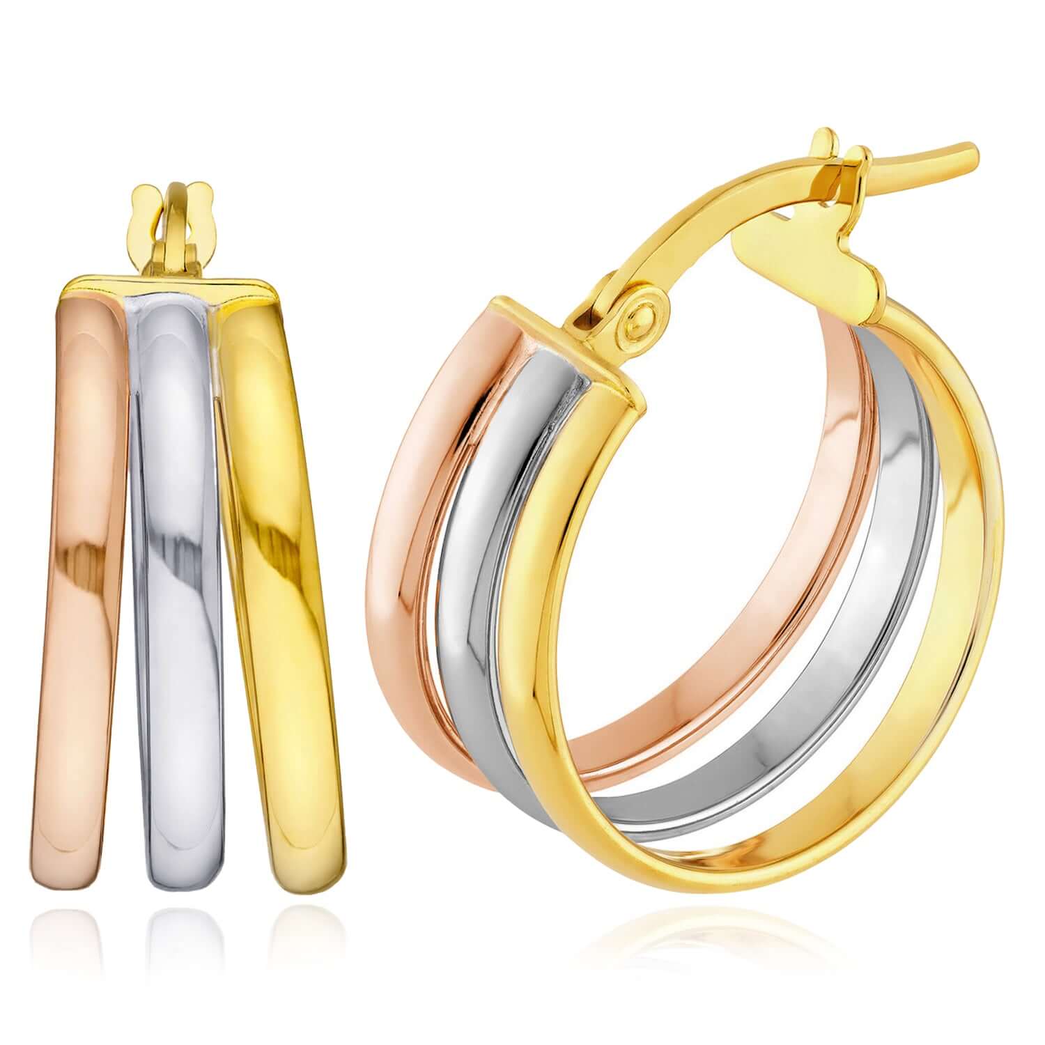 Read full return policyReal 14K Tri-Color Gold Round Triple Hoop Earrings 15mm