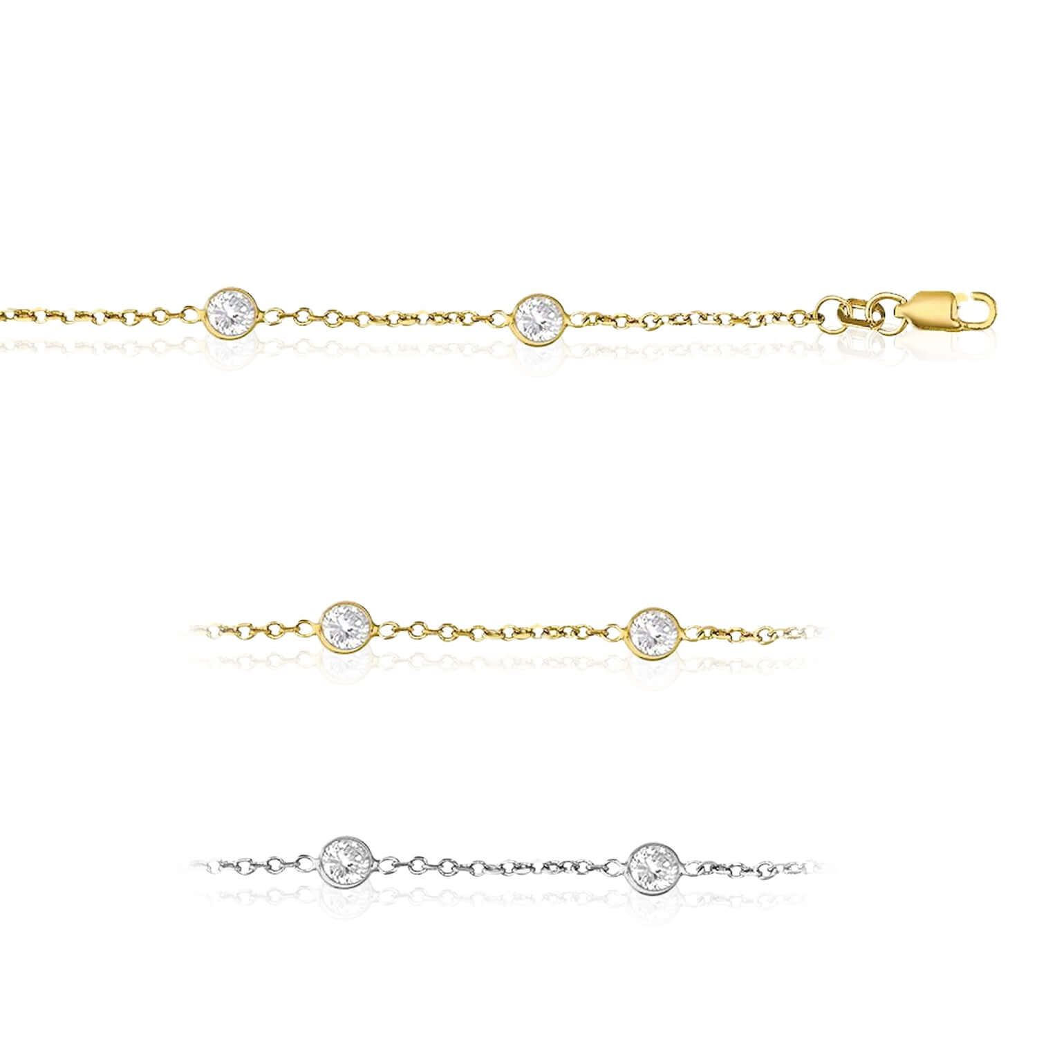Read full return policyReal 14K Gold Solid Yellow White Cable Link Bezel-Set CZ By The Yard Bracelet 7"