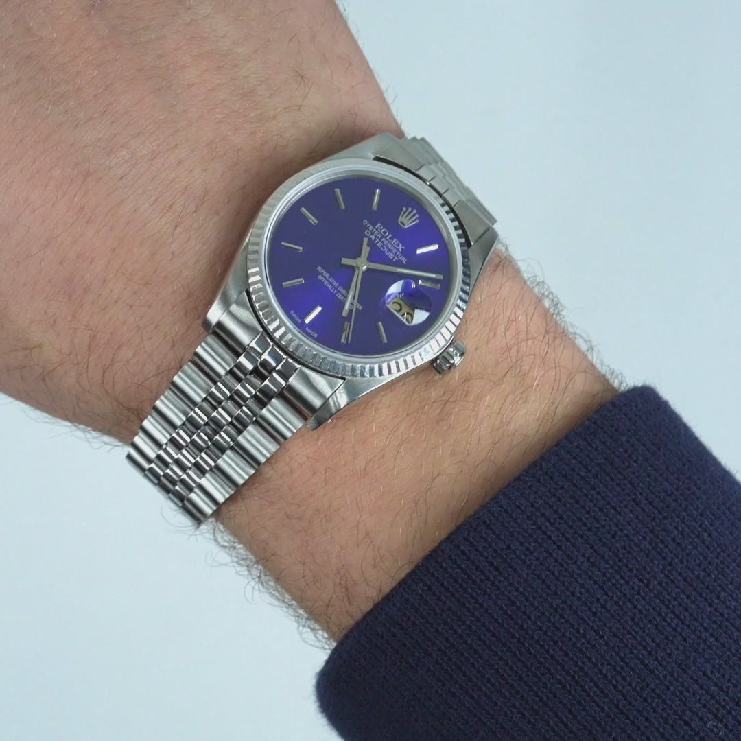Returns policy →36mm Rolex Datejust 1601 18K White Gold Bezel Stainless Steel Jubilee Band Men's Watch