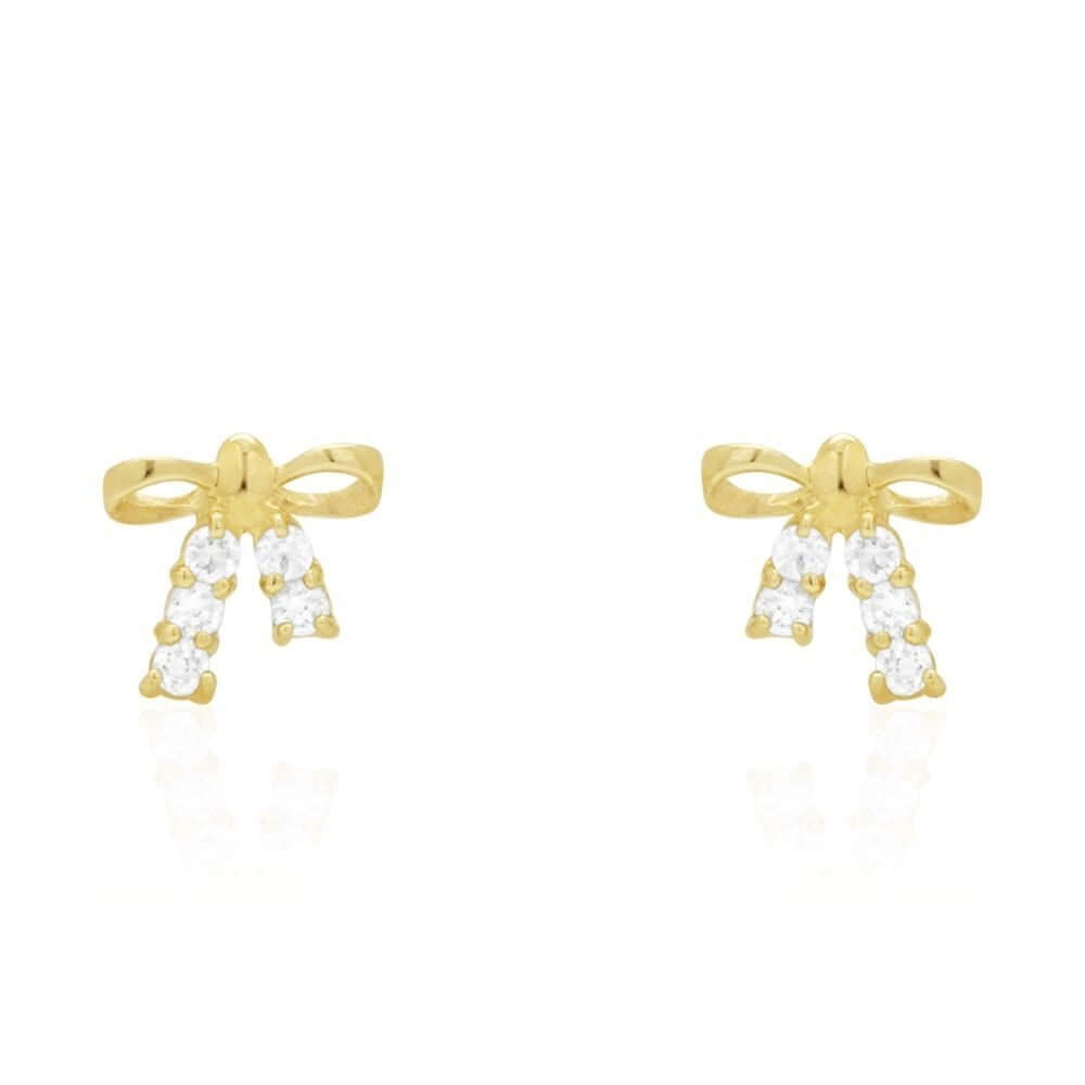 Read full return policyRound White Zircon Bow Tie Screwback Stud Kid Earrings 14k Yellow & White Gold