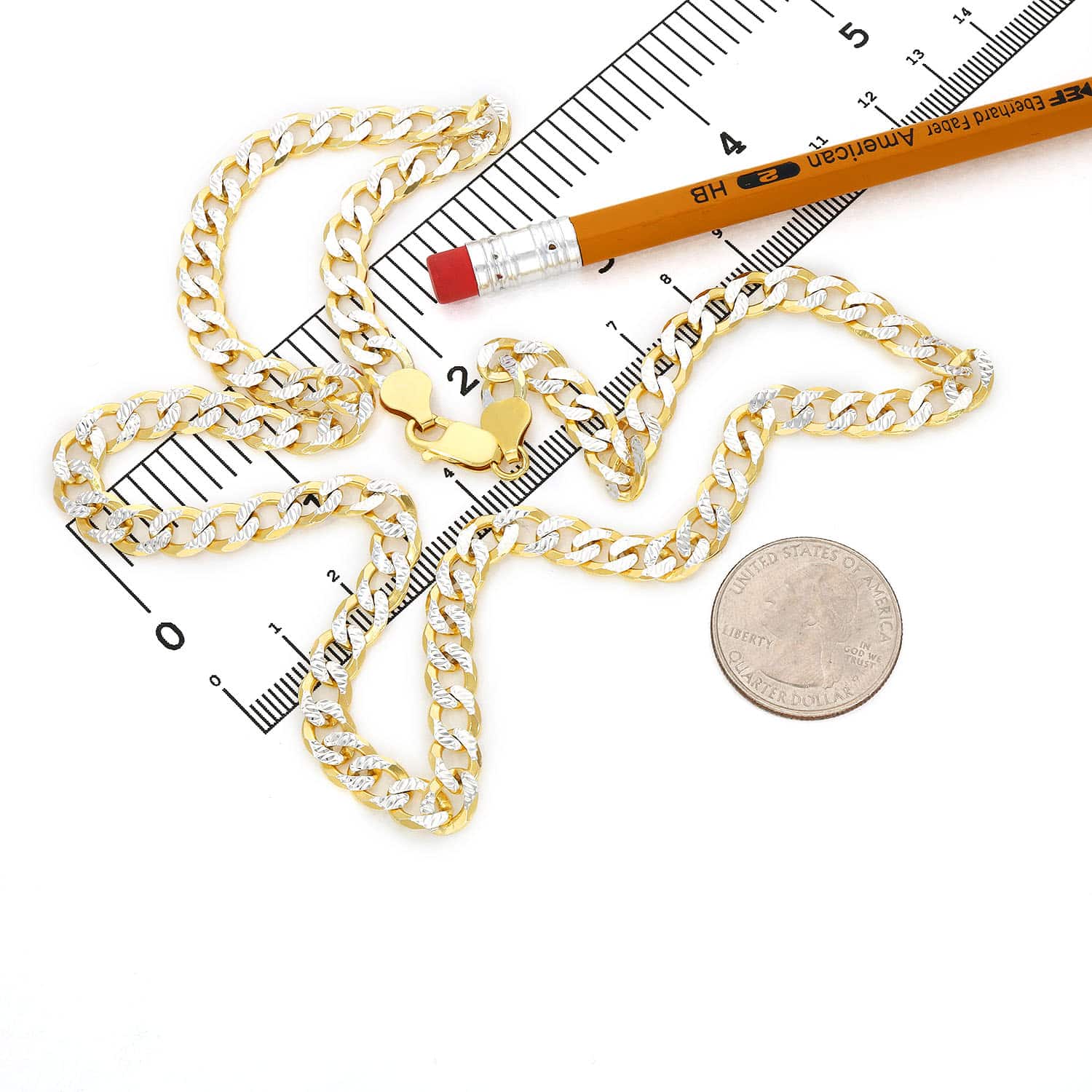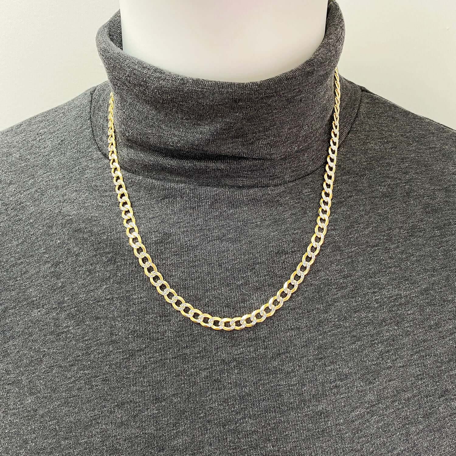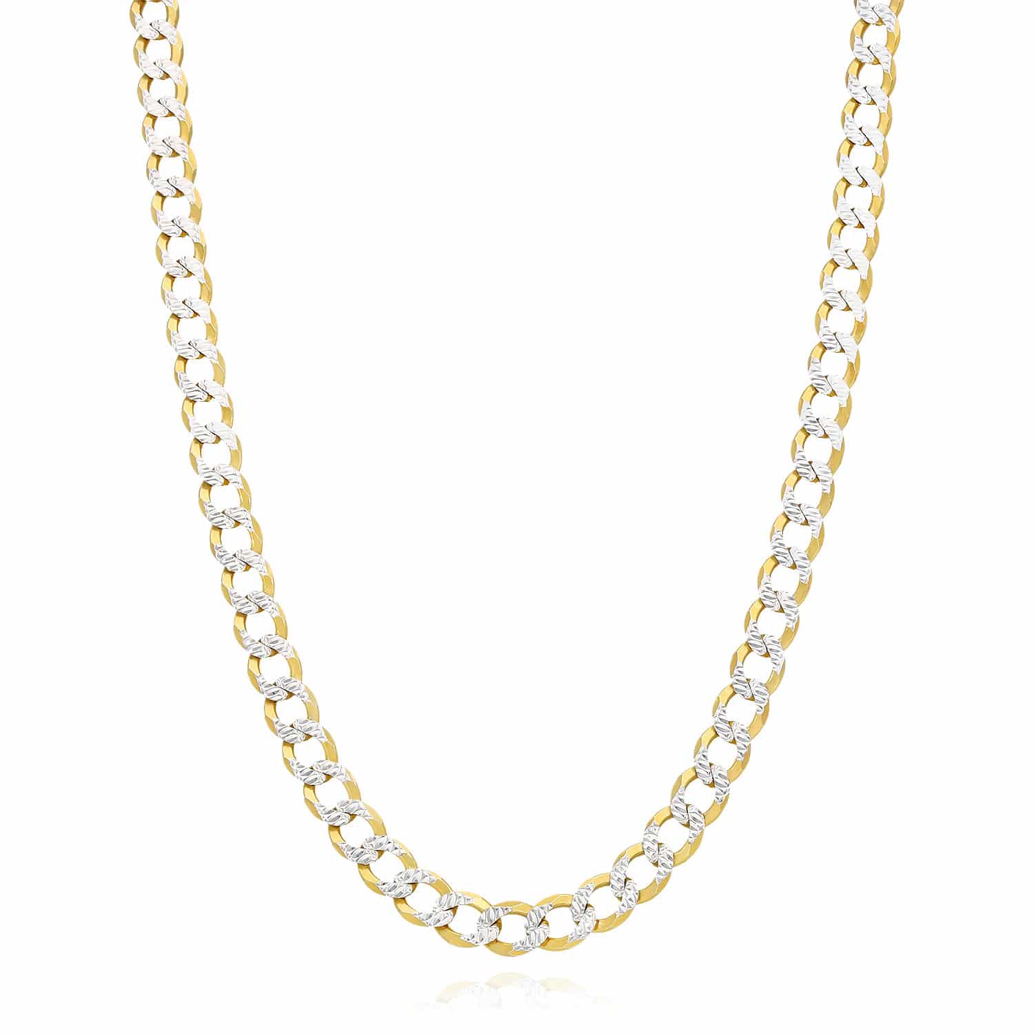Read full return policy18K Gold Over Silver 6.5mm Diamond-Cut Pave Cuban Chain (Solid Links) 20"-26"