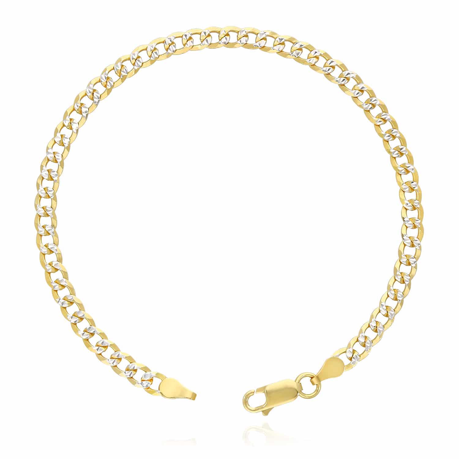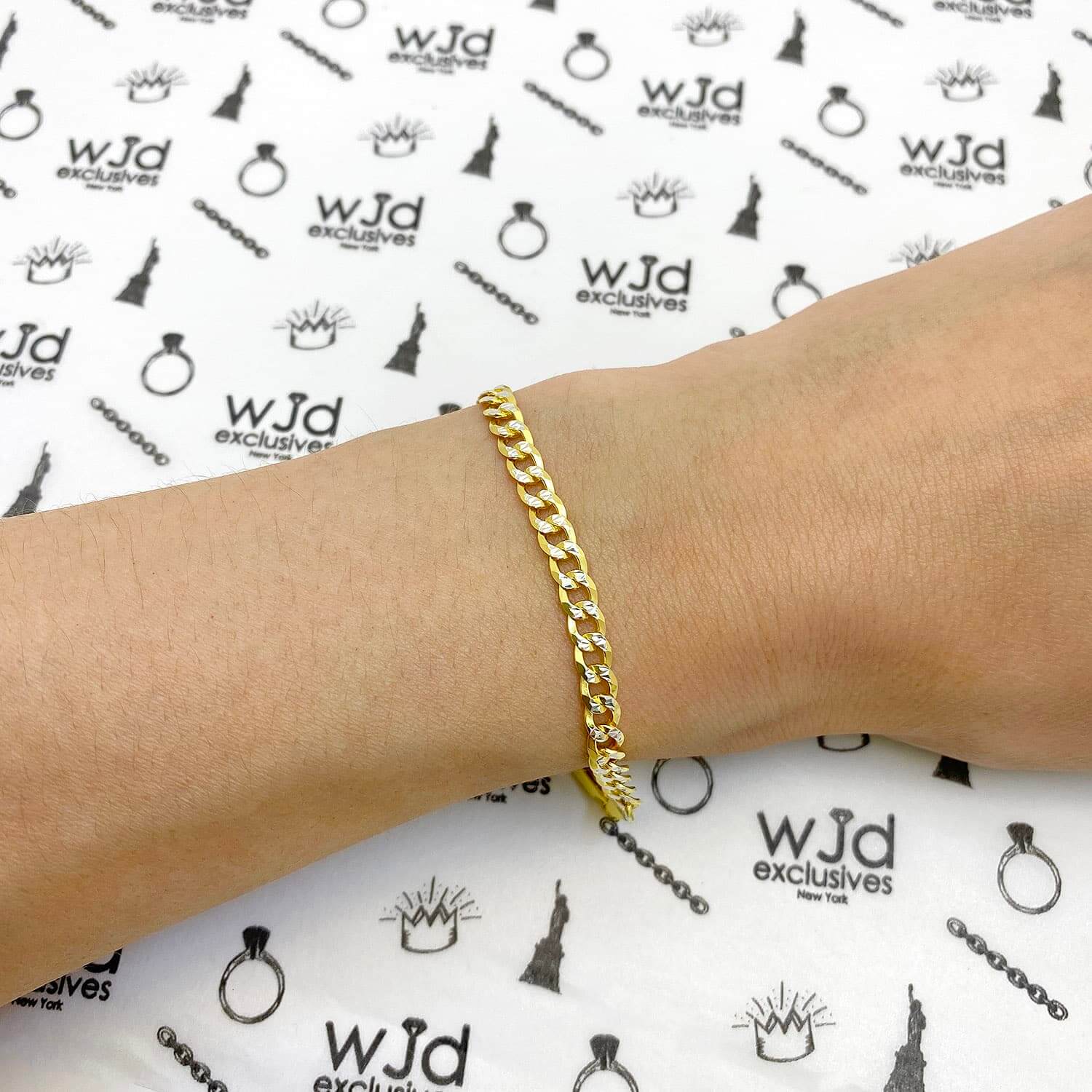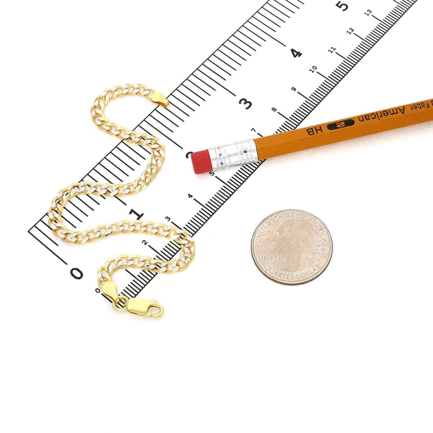 Solid 18K Gold Over Silver Diamond-Cut Pave 4mm Cuban Curb Bracelet 8"-9"Couldn't load pickup availability