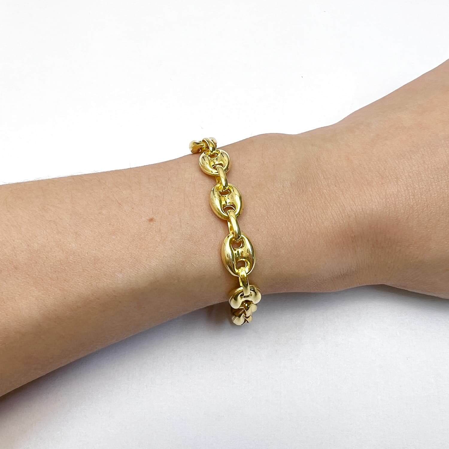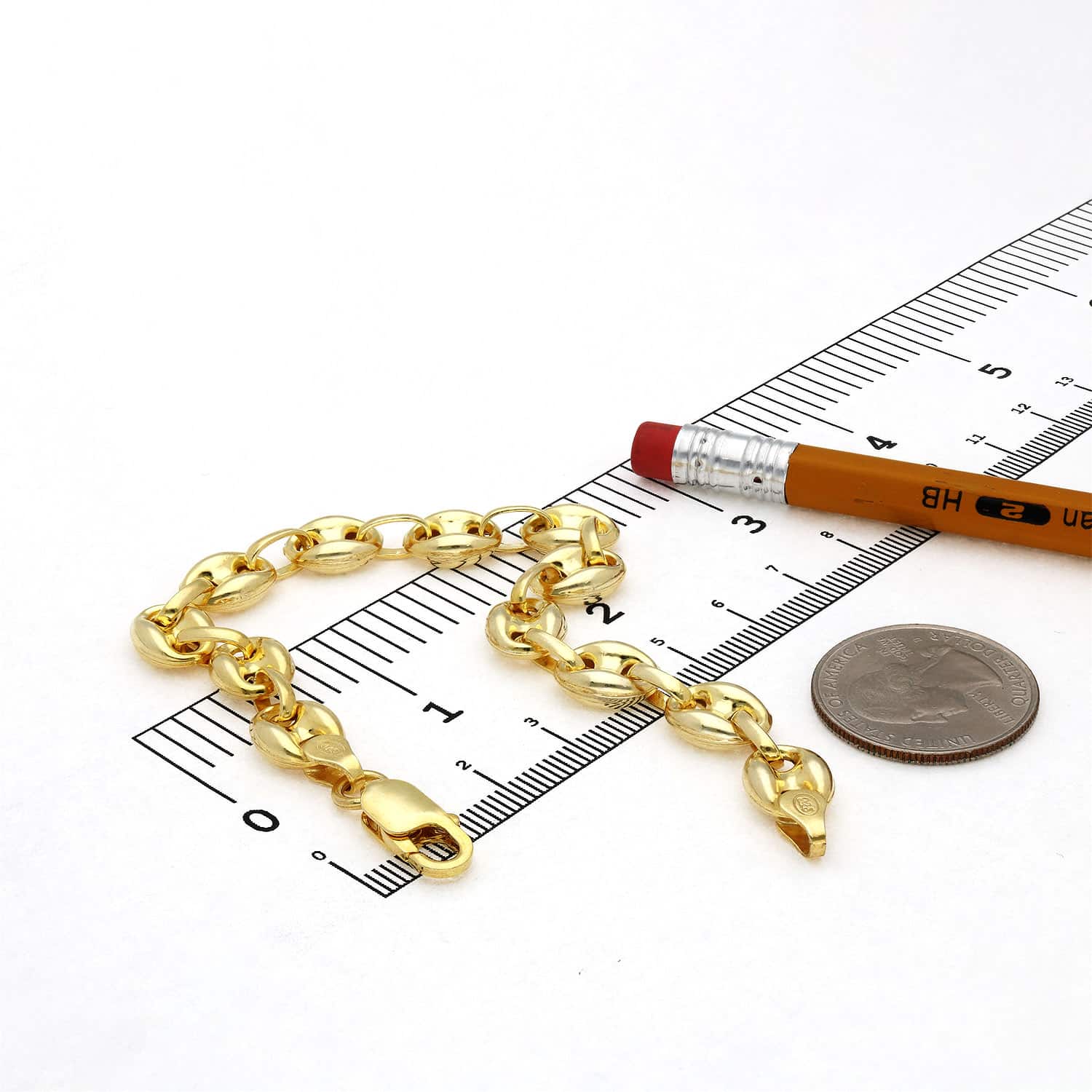 18K Yellow Gold Over Silver 9mm Puffed Anchor Mariner Bracelet (Solid Links) 7.5"-9.25"Couldn't load pickup availability