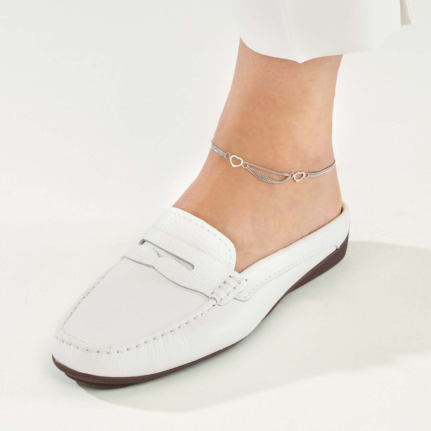 Sterling Silver Heart 4mm Charm Cable Chain Ankle Bracelet (Solid Links) 9"-10" AdjustableCouldn't load pickup availability