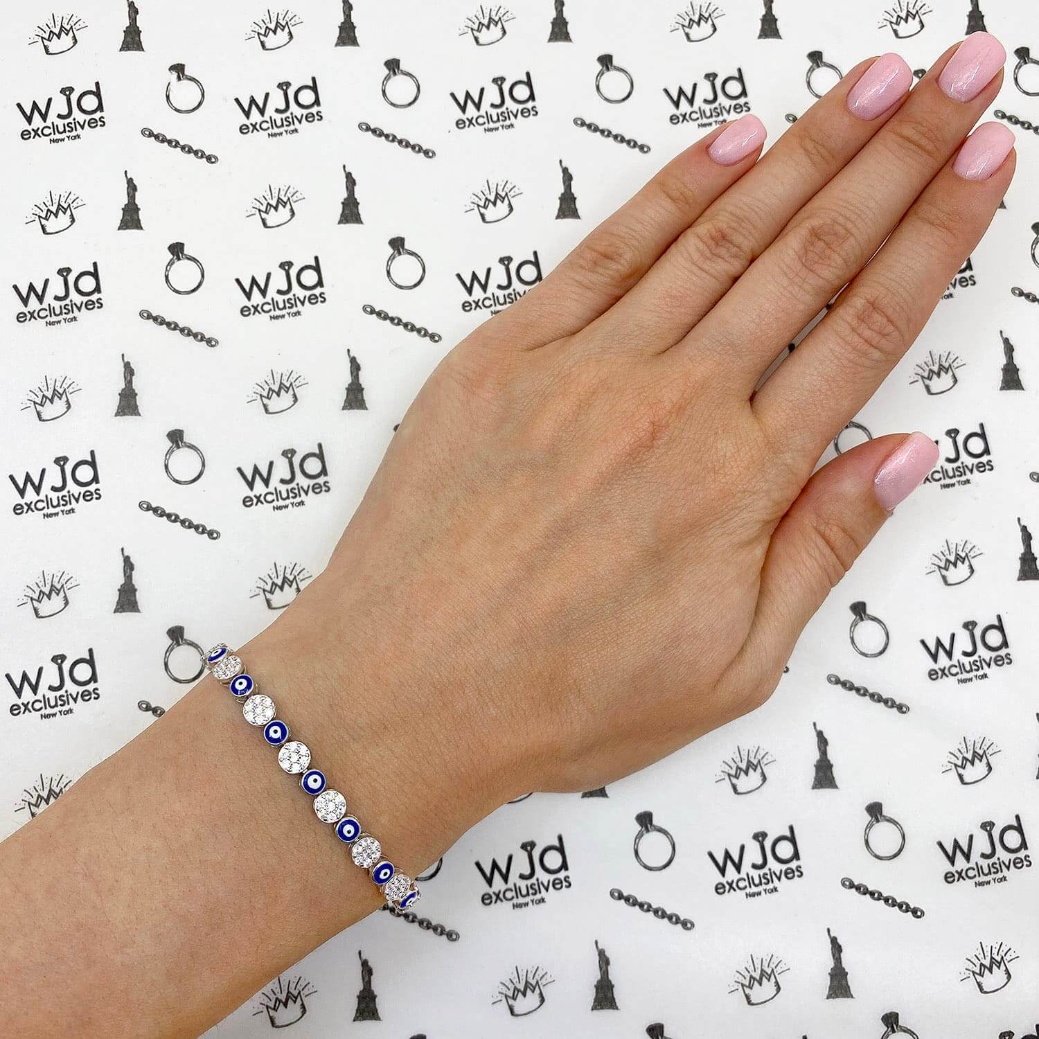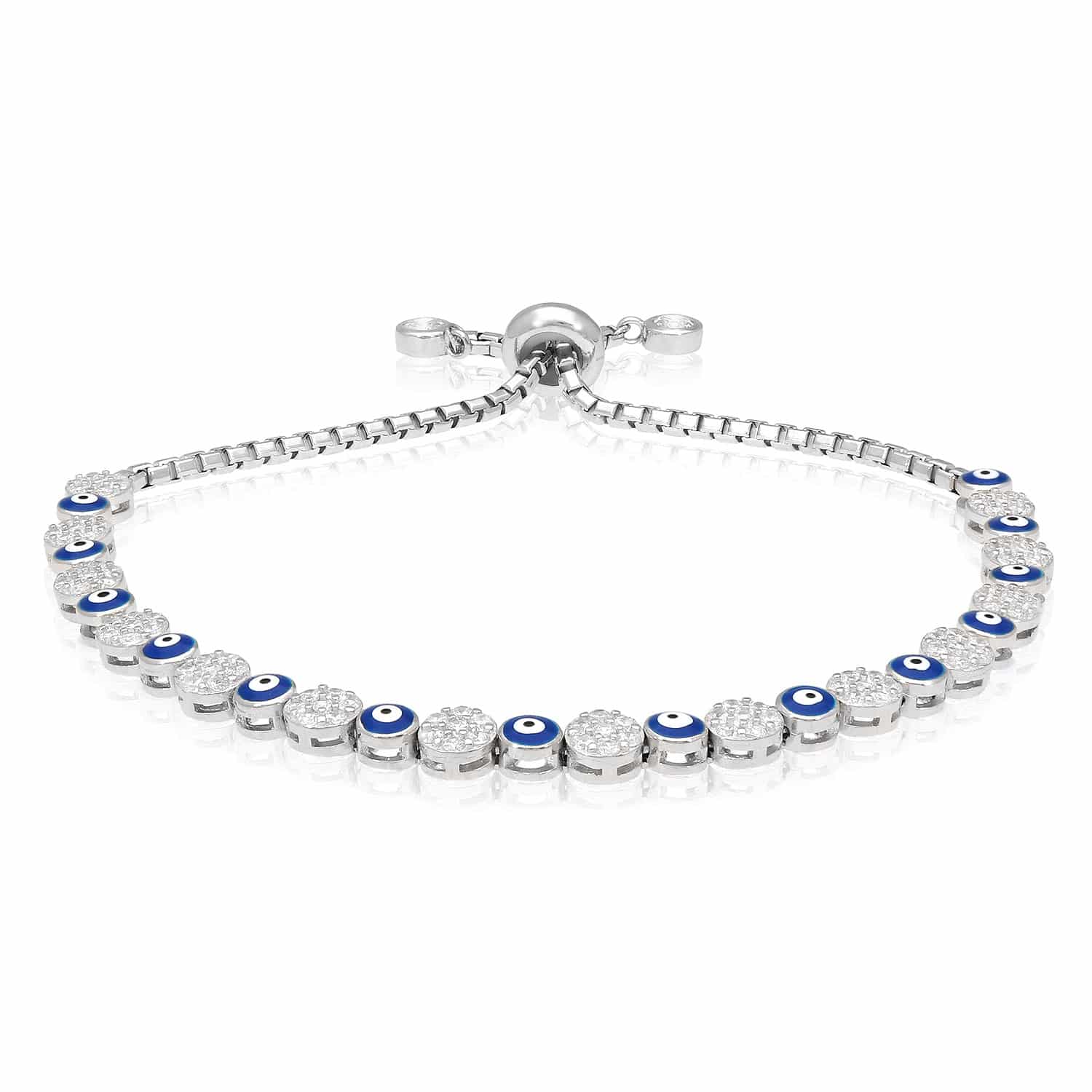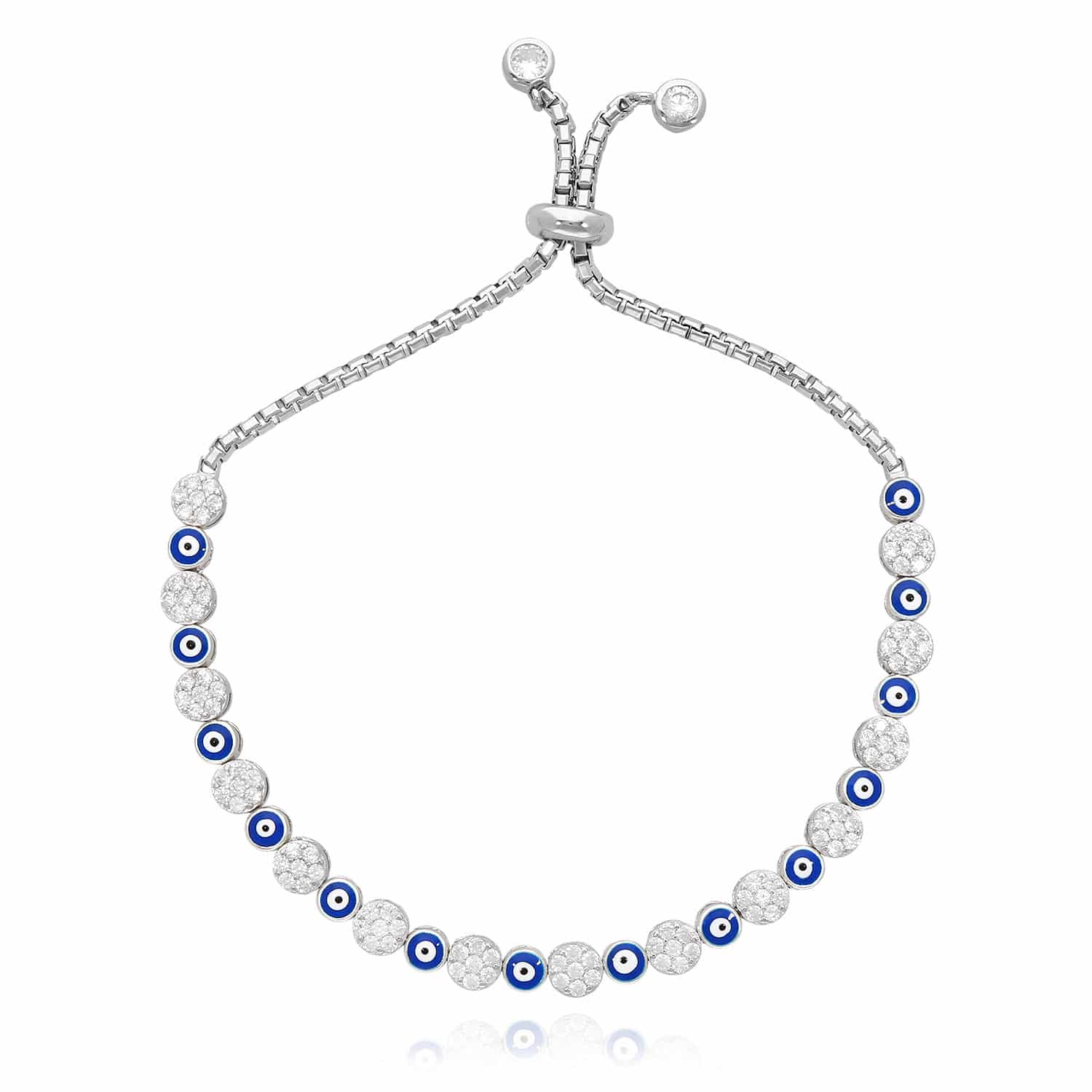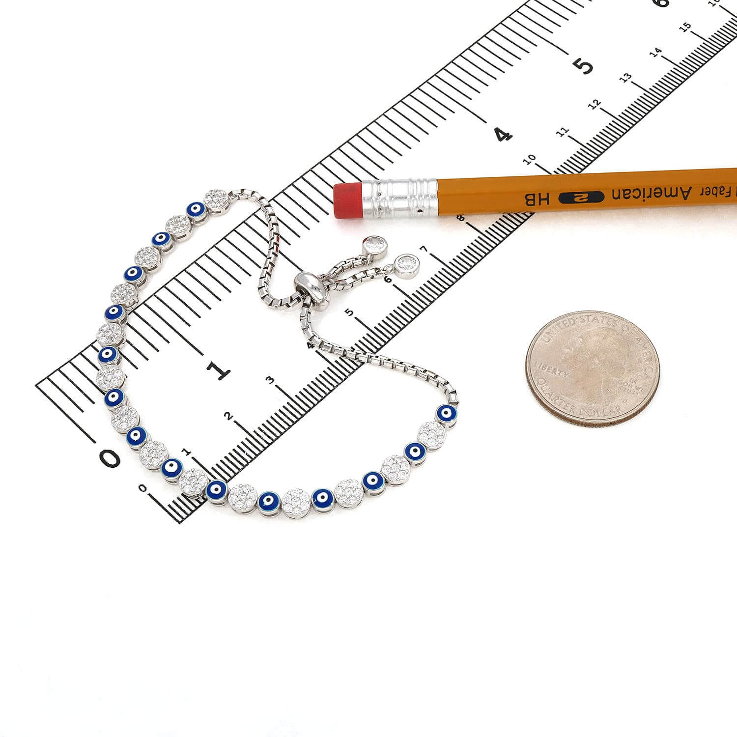 Read full return policySterling Silver White Sapphire Cluster Evil Eye Bolo Bracelet 5.25"-9.25" Adjustable