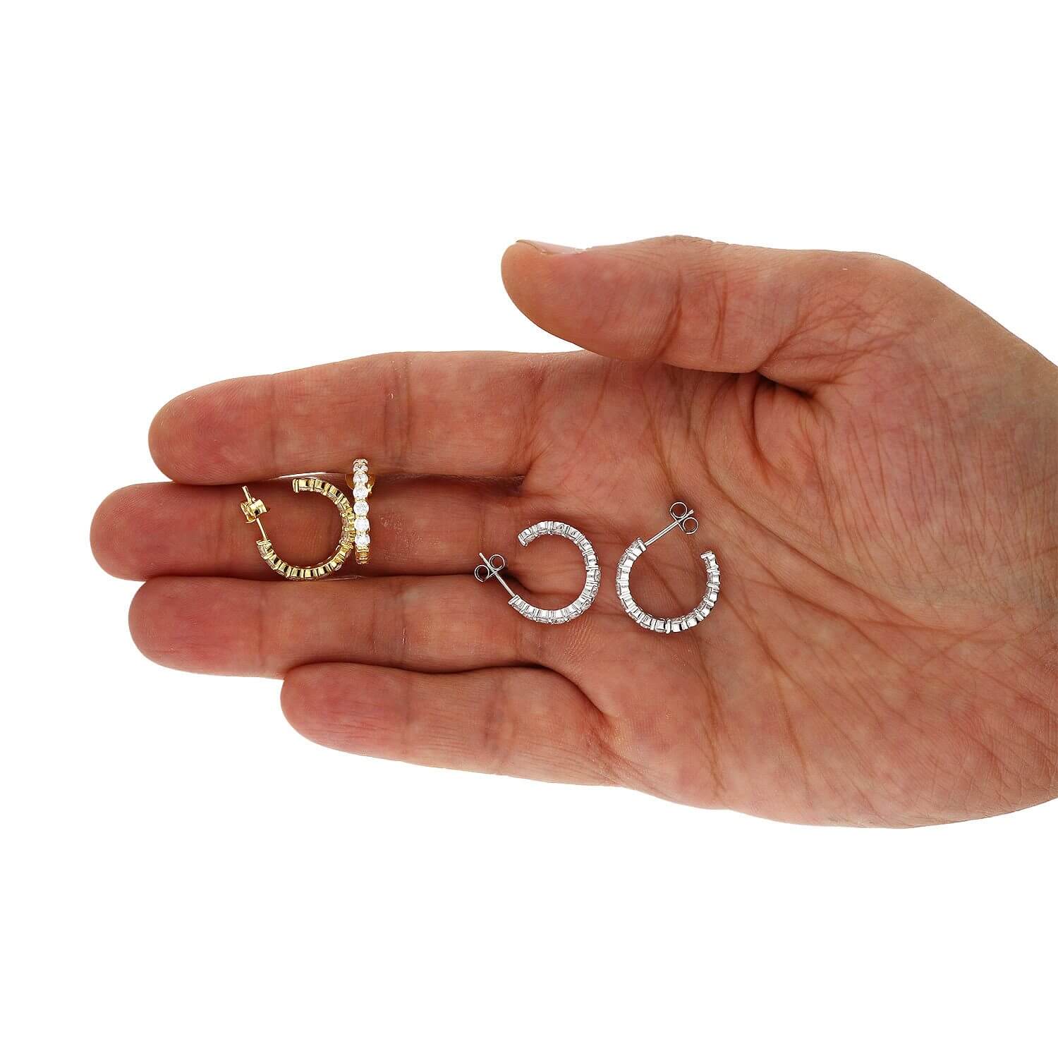 Read full return policyYellow White Gold Over 925 Silver Inside Outside CZ Stud Hoop Earrings