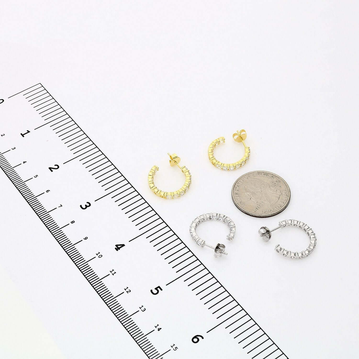 Yellow White Gold Over 925 Silver Inside Outside CZ Stud Hoop EarringsCouldn't load pickup availability