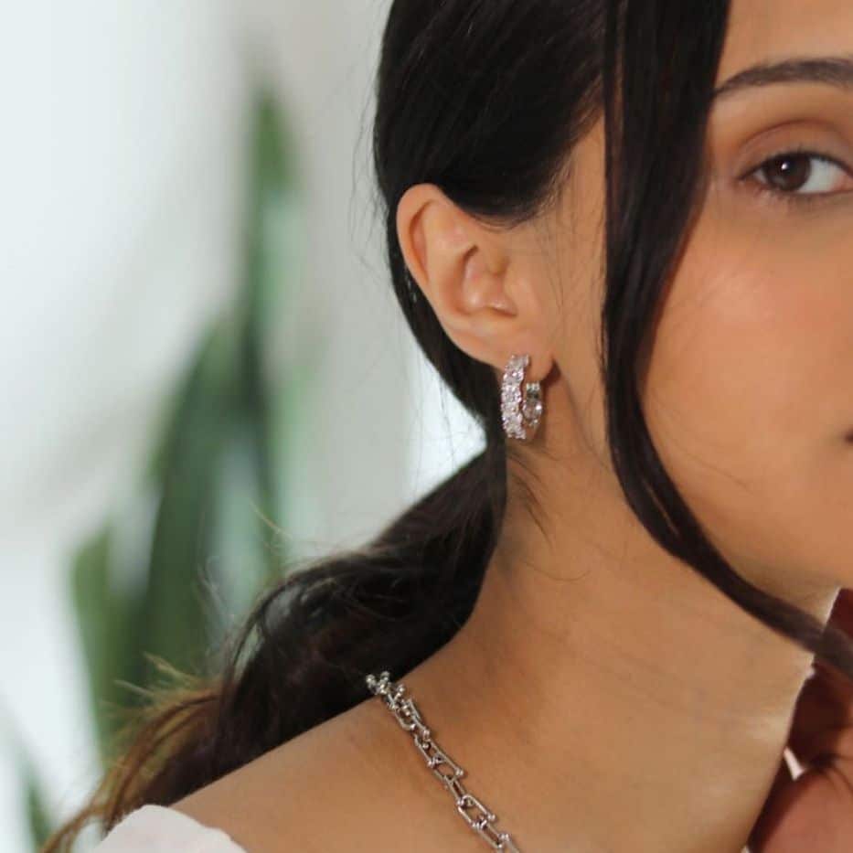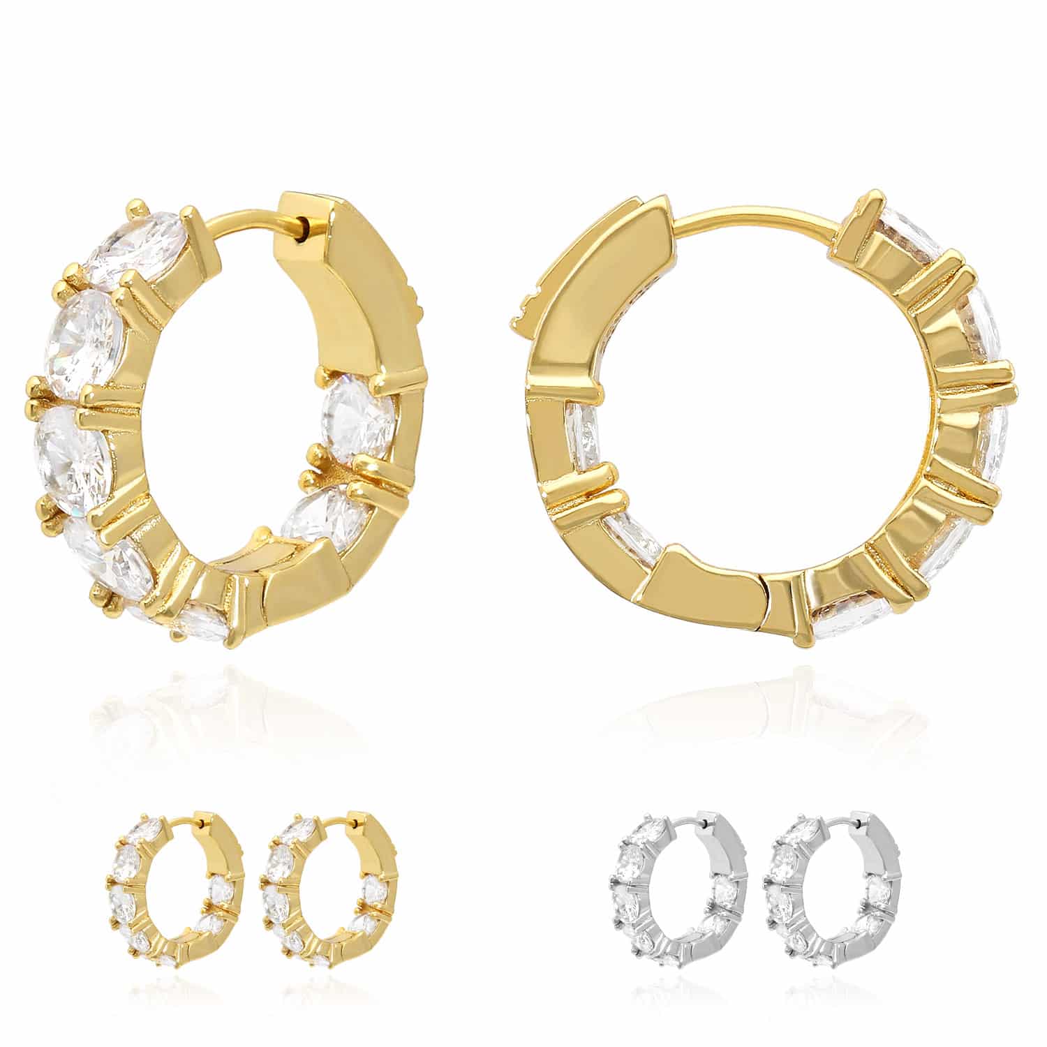 Read full return policyYellow White Gold Over Silver CZ Huggie Hoop Earrings 22mm