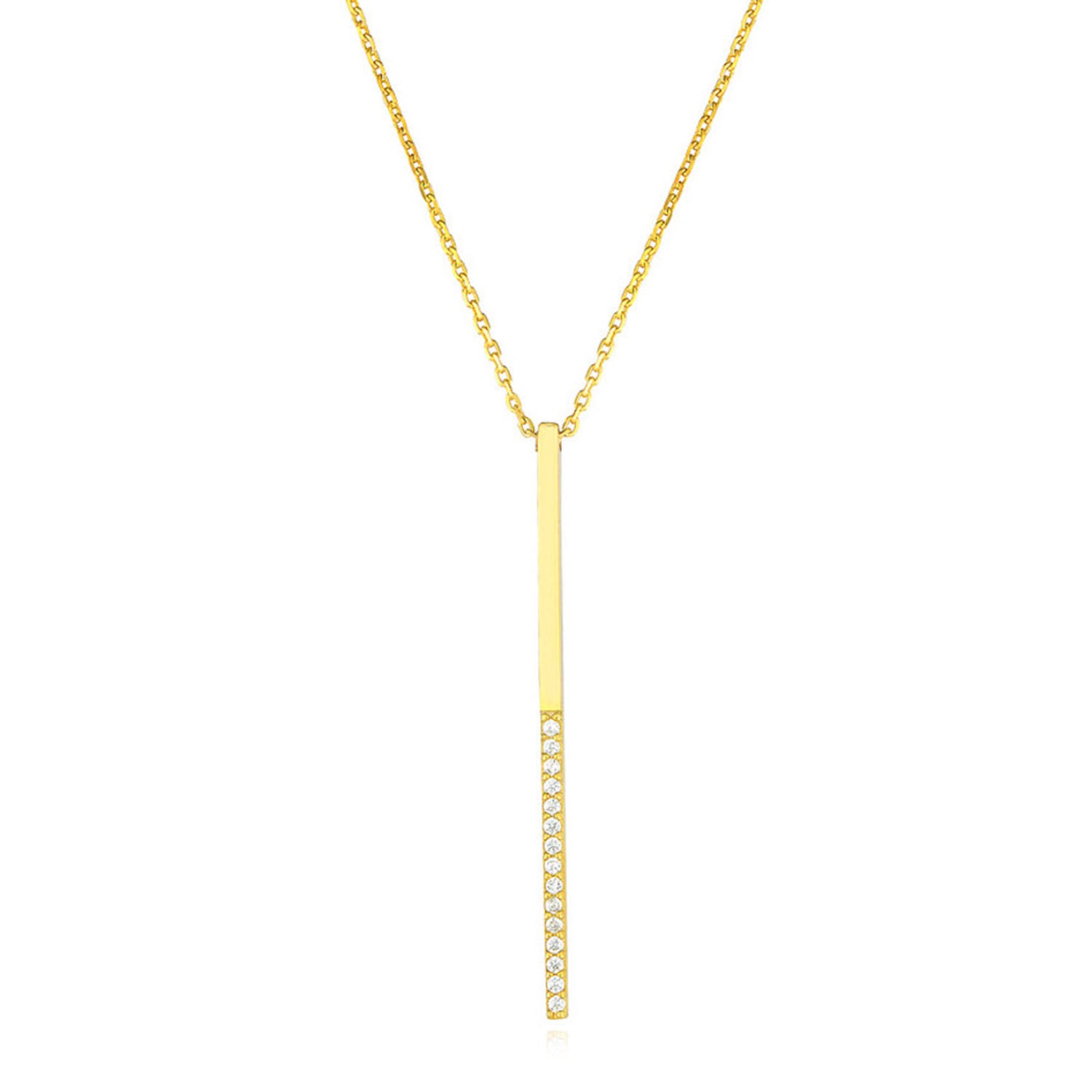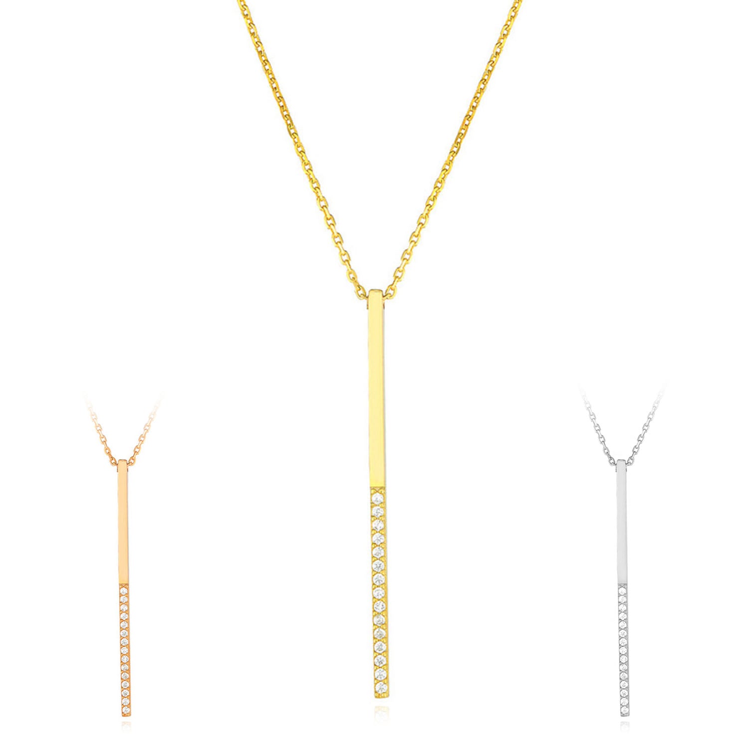 Yellow White Rose Gold Plated Sterling Silver CZ Bar Lariat Necklace 16"-18"