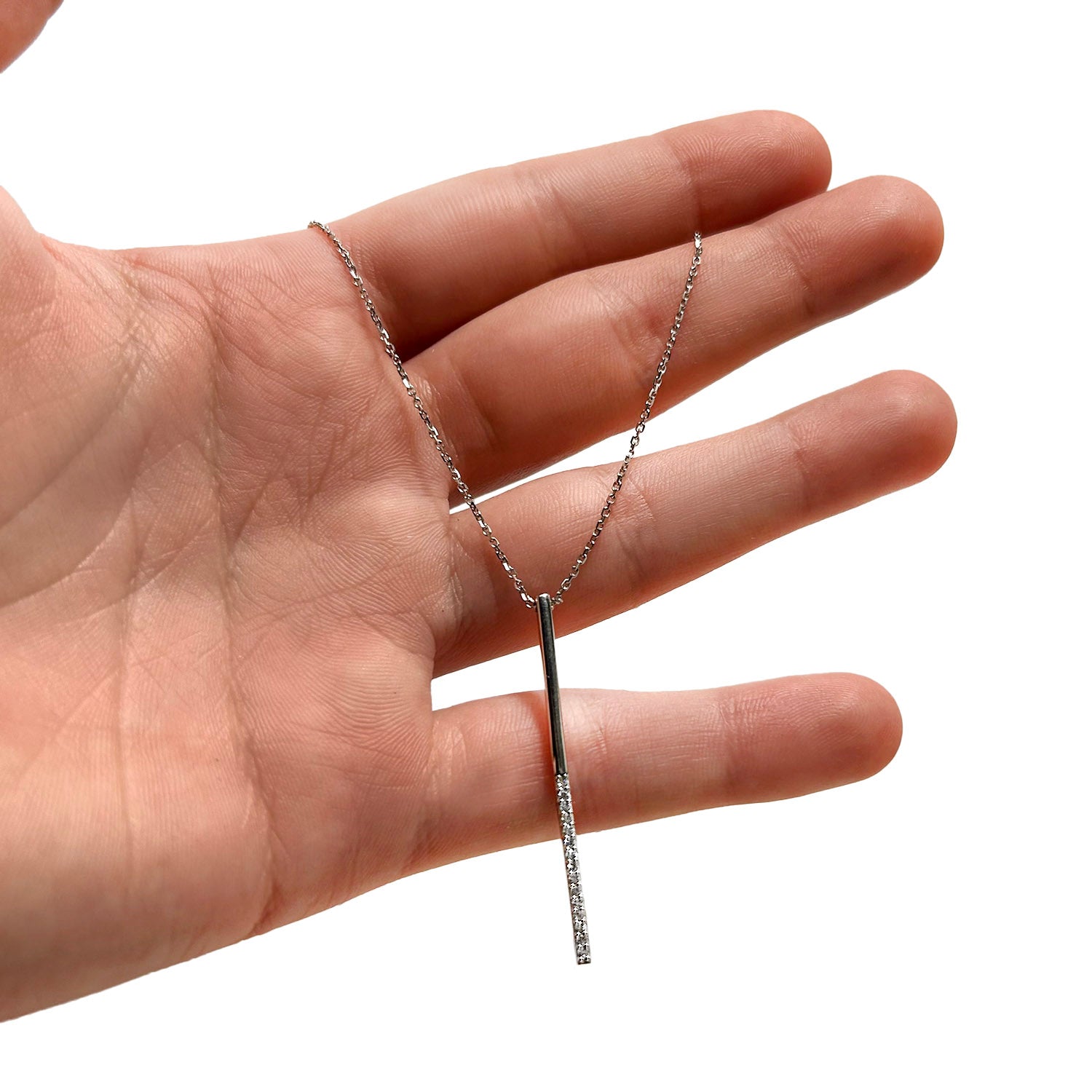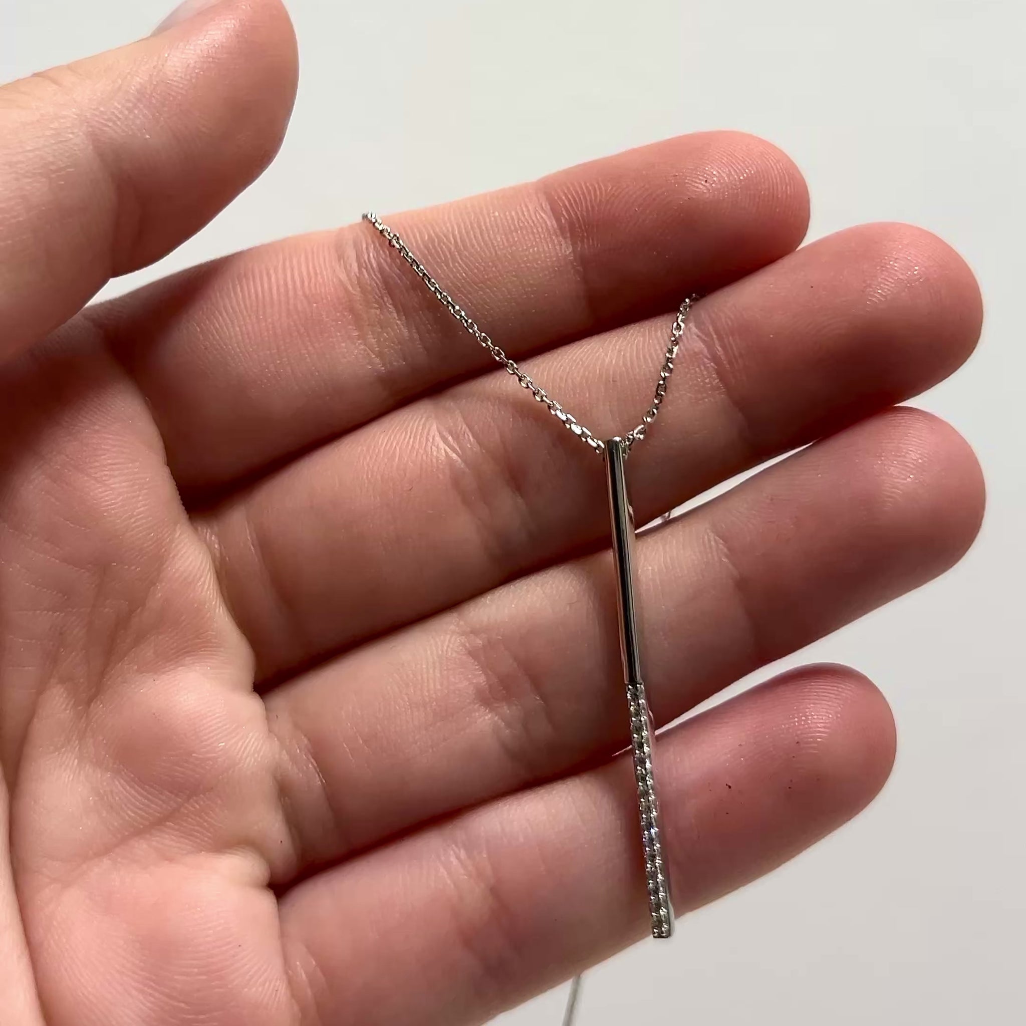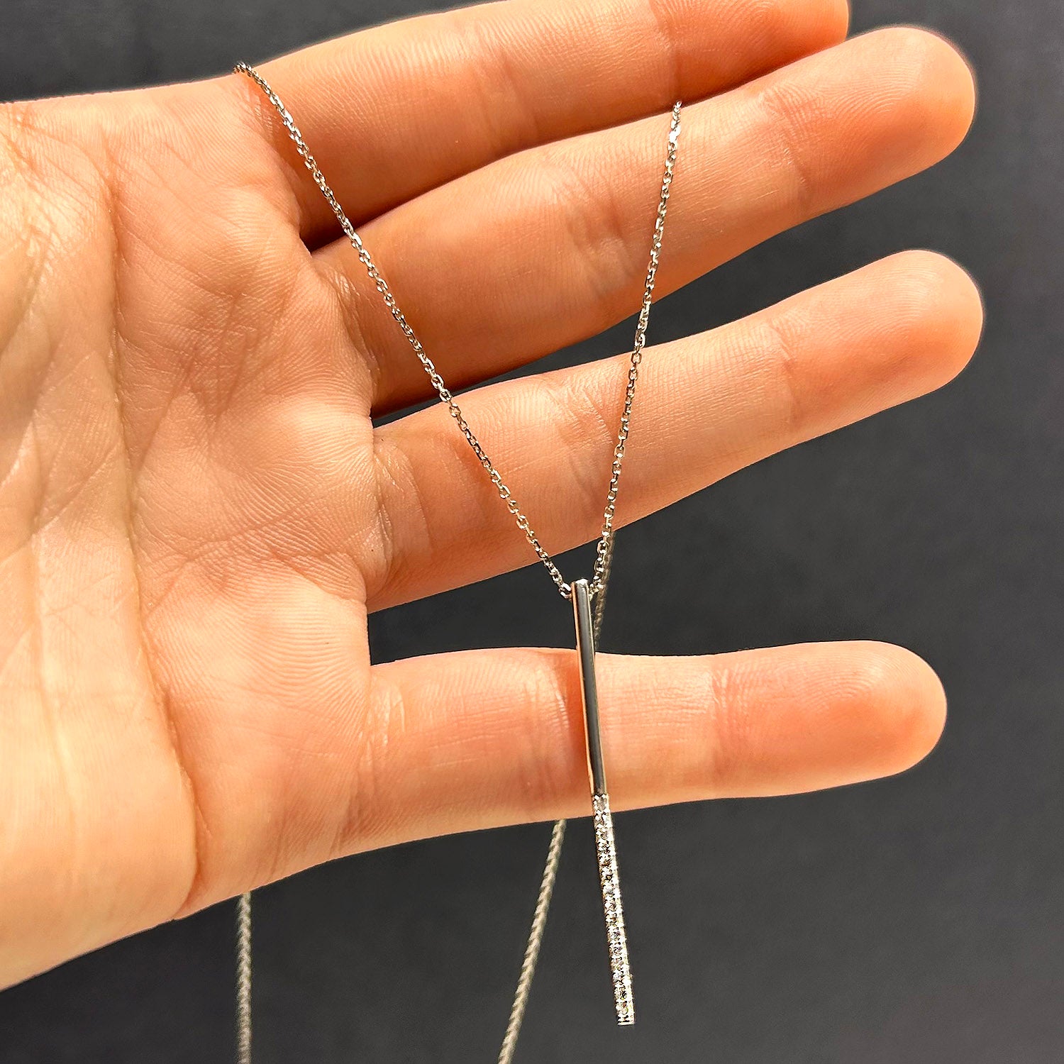 Sleek lariat drop with CZ bar sparkle—Italian-made, adjustable, and instantly cleans up any neckline.