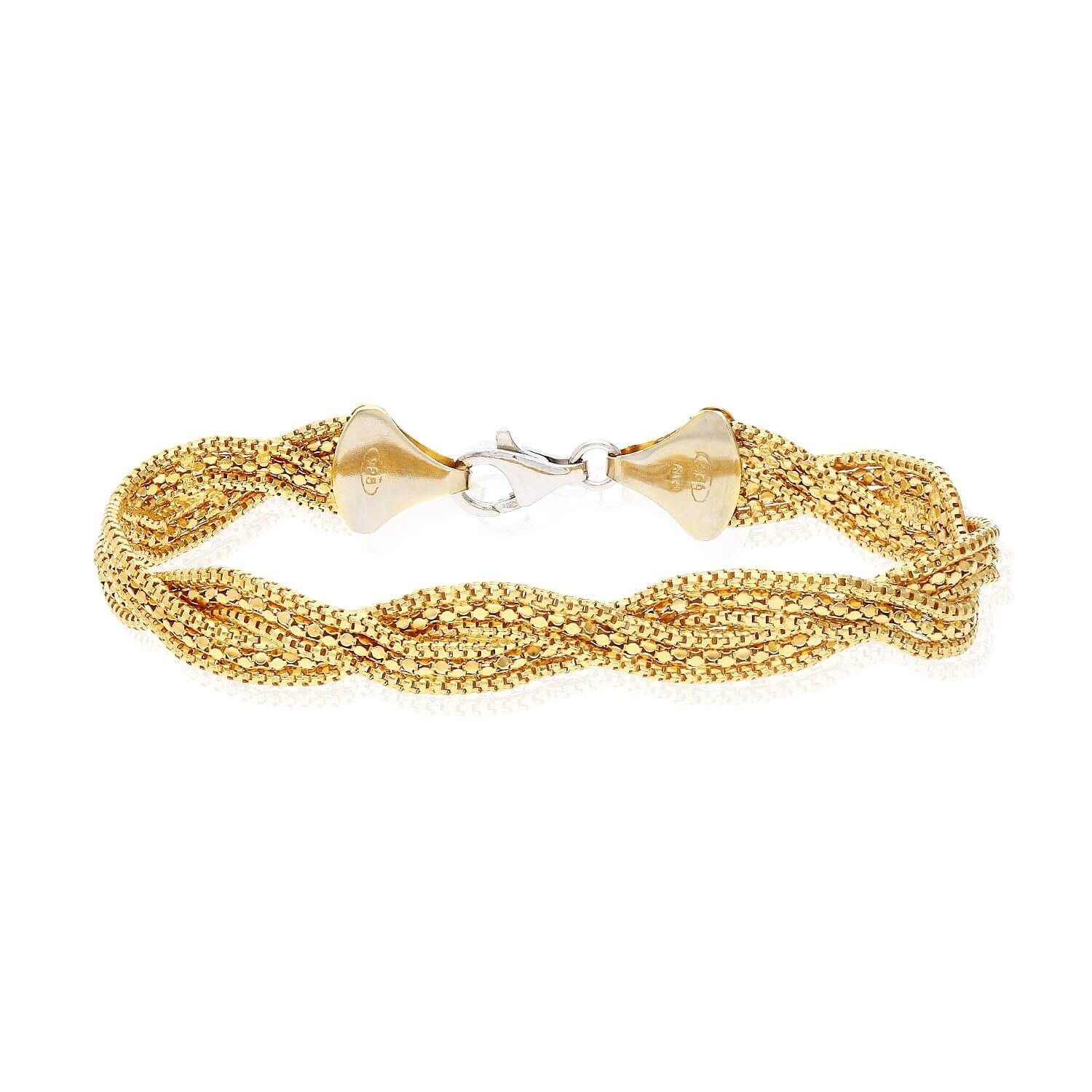 Read full return policyYellow White Rose Gold Over Sterling Silver Fancy Braided Box Bracelet (Hollow) 7.5"